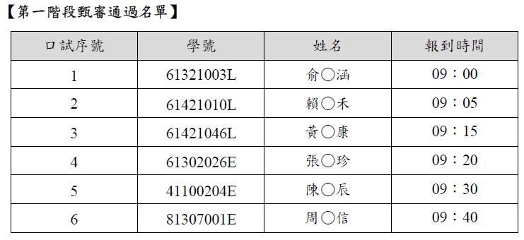 五、口試順序:依照 通過名單之口試序號 依序進行。